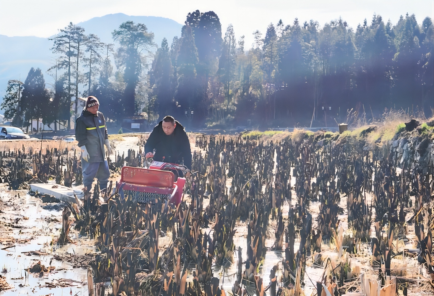 近日,在景宁大漈乡彭岑村,一辆辆翻耕机在田间地头来回穿行,成排的茭白秸秆被卷入“腹”中,不一会儿,茭白田的翻垦工作就完成了。今年以来,大漈乡深入实施“机械强农”行动,依托强村公司成立农机服务中心和农机助耕队,投资140余万元购置了翻耕机、植保无人机、烘干机等一批适用于丘陵山区的农机具,采取托管式、订单式、租赁式等模式,为当地高山果蔬产业发展提供机械化服务保障。